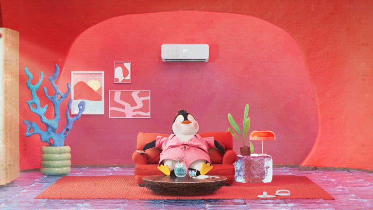 Patricia is barely surviving the summer heat. She lounges in her pajamas on the sofa, a cold drink in hand as she tries to cool down. Then she switches on the aircon, powered by Boxt.