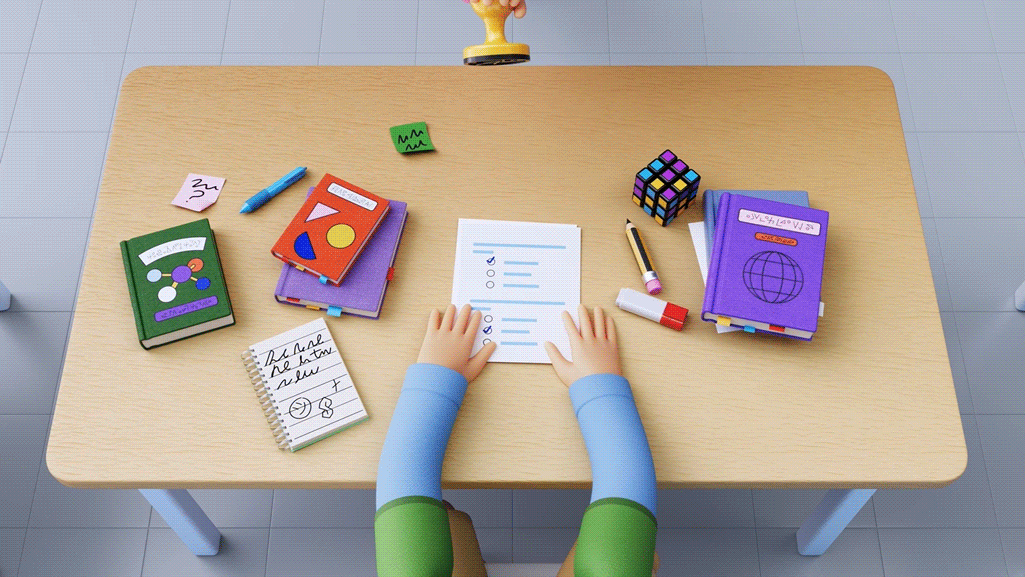 Project Type : AnimationYear : 2025Great Homework Helpers is a collection of apps designed for students who want to get their homework done with confidence and ease. The story focuses on a high school or college student working on an assignment at their desk, or as the animation shows, looking at an exam they’ve just aced with an A+ reflected in their glasses.